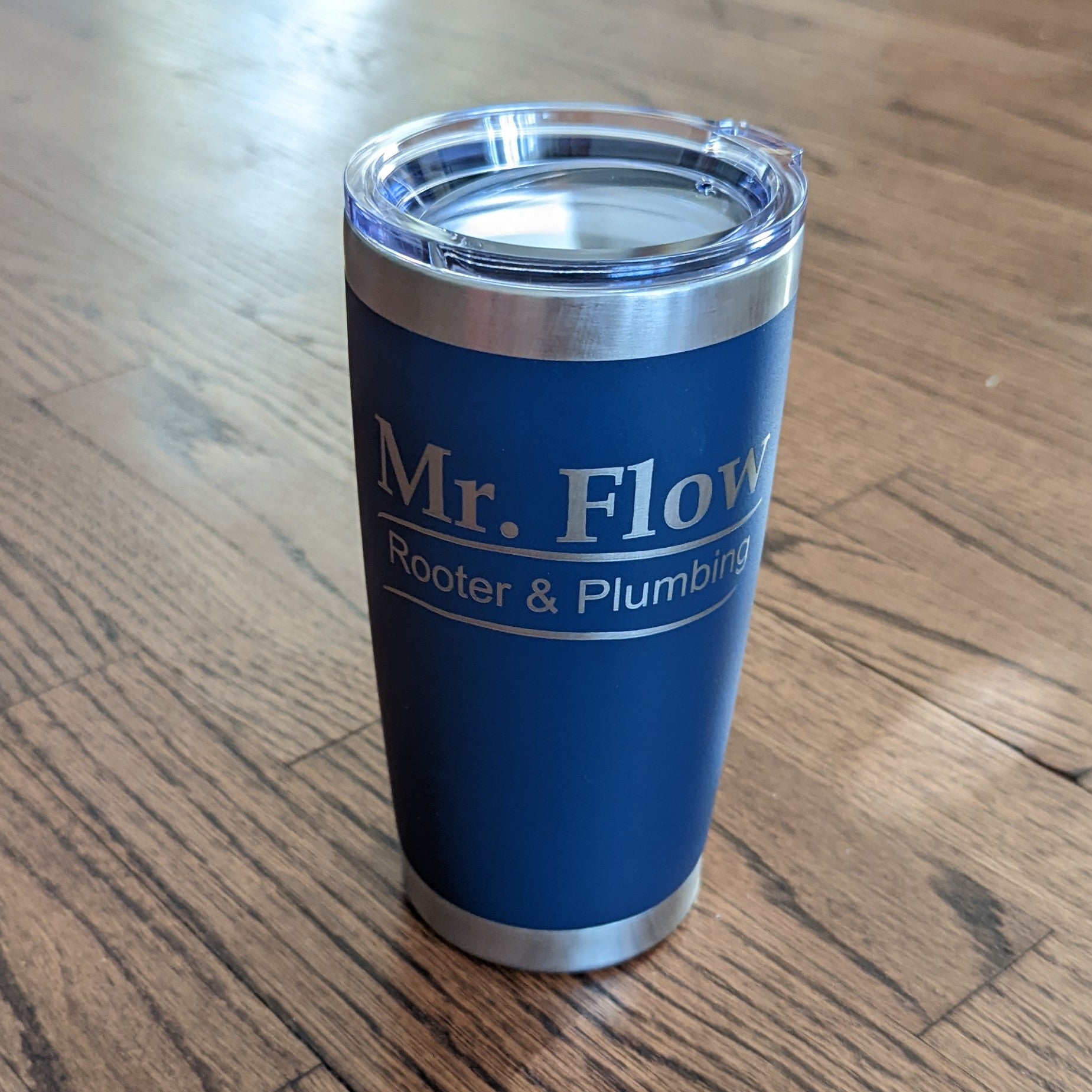 Have your logo laser engraved on a 20oz. stainless steel tumbler.